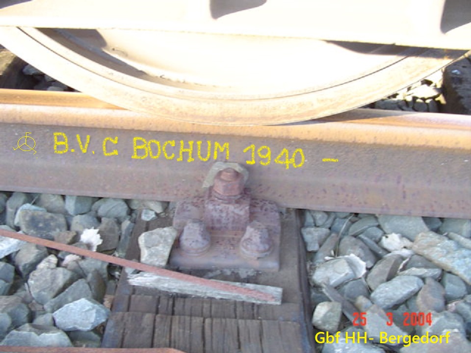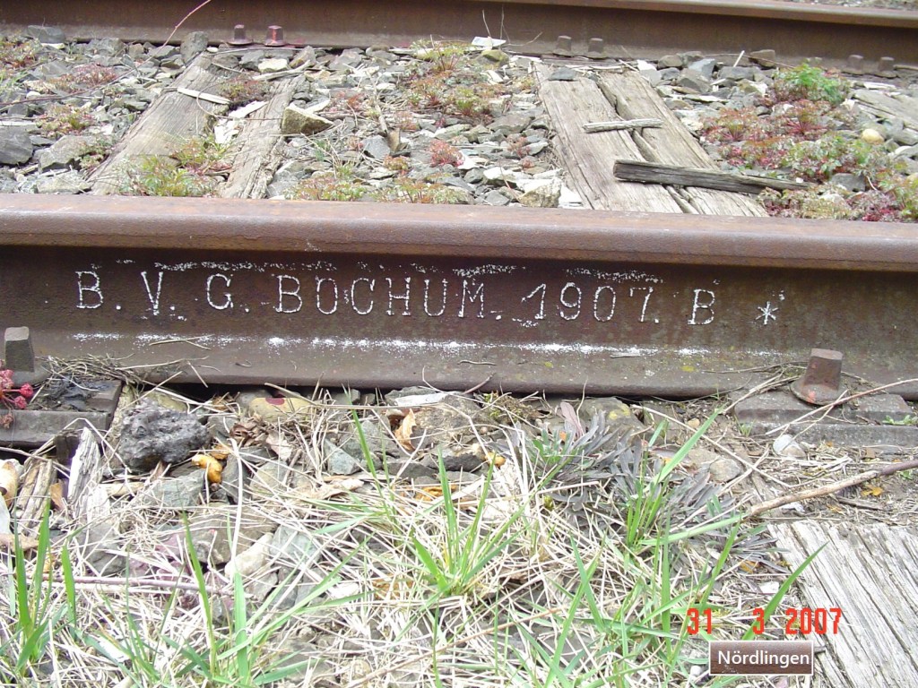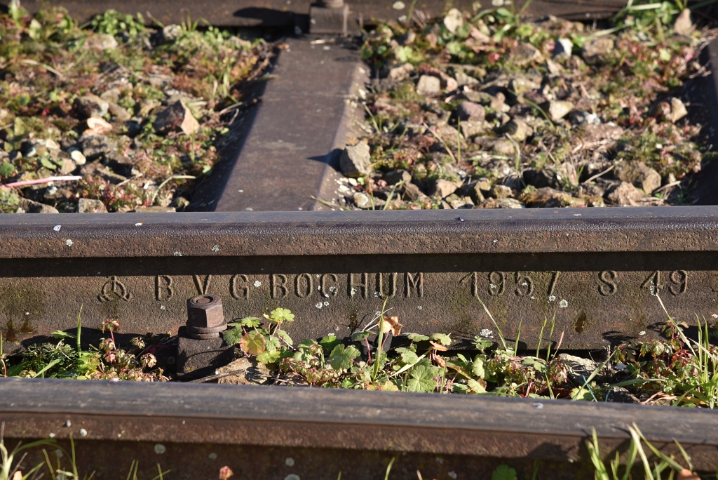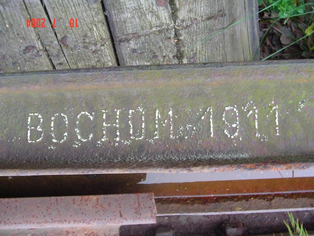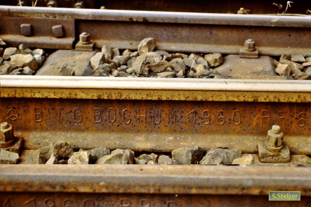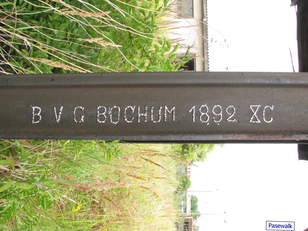 Schienen der BVG Bochum erhielten im Walzzeichen den Zusatz „K“ oder „VT“ für verschleißhärtete Schienen. Bisher kein Foto.