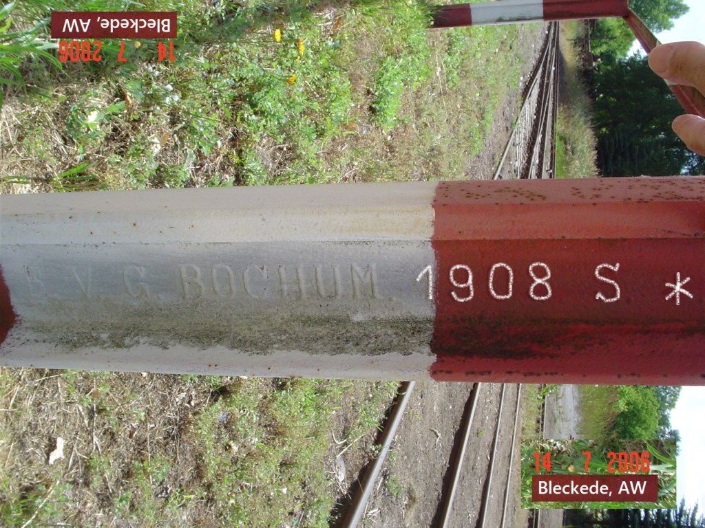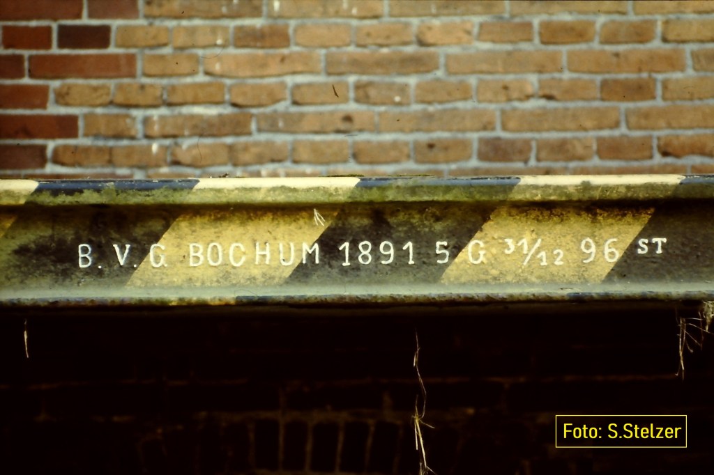 Umständlichere Markierung im Walzzeichen für 5 Jahre Gewährleistung mittelt hochgestellter Zahlen und Bruch: „B.V.G. BOCHUM 1891 5 G 31/12 96 ST).