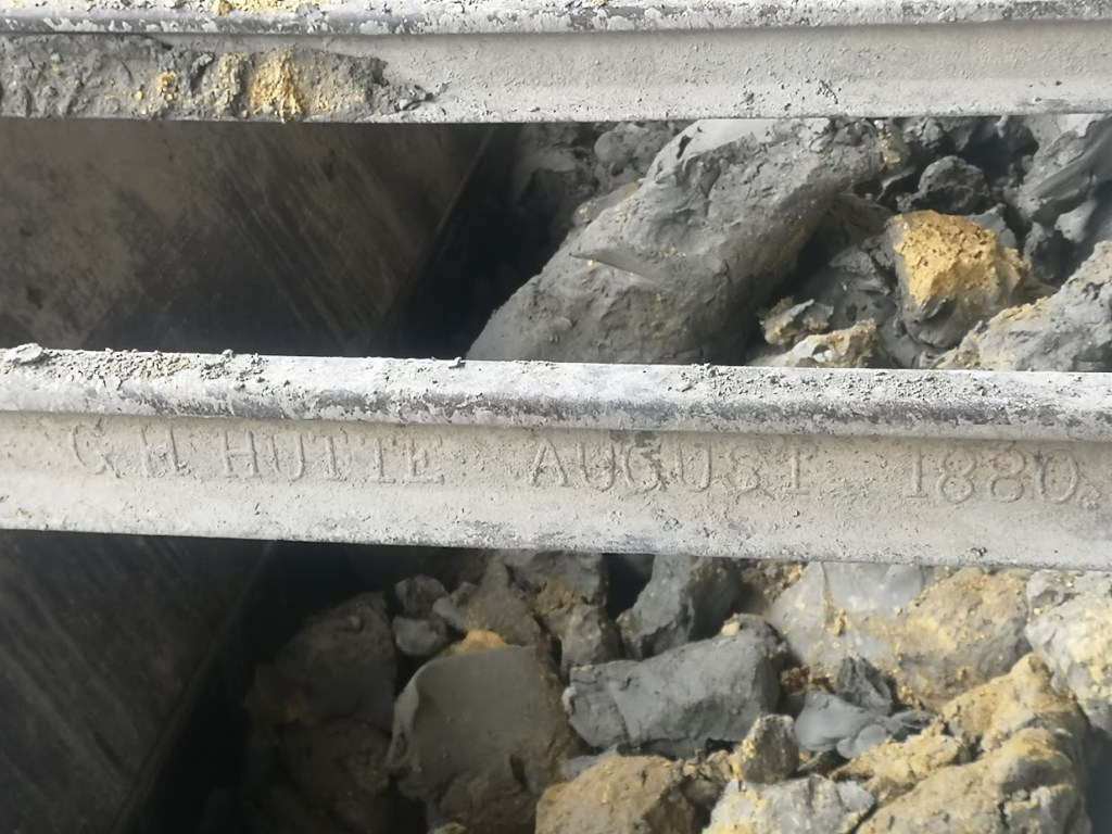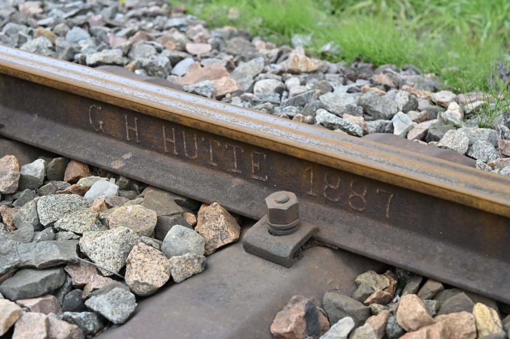 - Produktionsdatum der Schiene: Dezember 1886 („1886/XII“ als Bruch geschrieben)