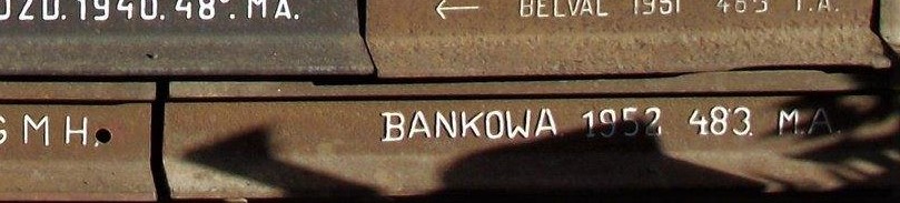 - Die vier großen polnischen Schienenwalzwerke für Normalschienen wurden mit Nummern versehen. Diese wurden auch in die Walzzeichen integriert. Die Huta Bankowa erhielt die Nummer 1. Diese ist auf der Schiene in einem Kreis dargestellt.