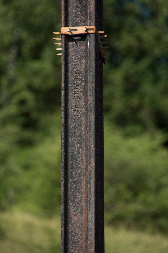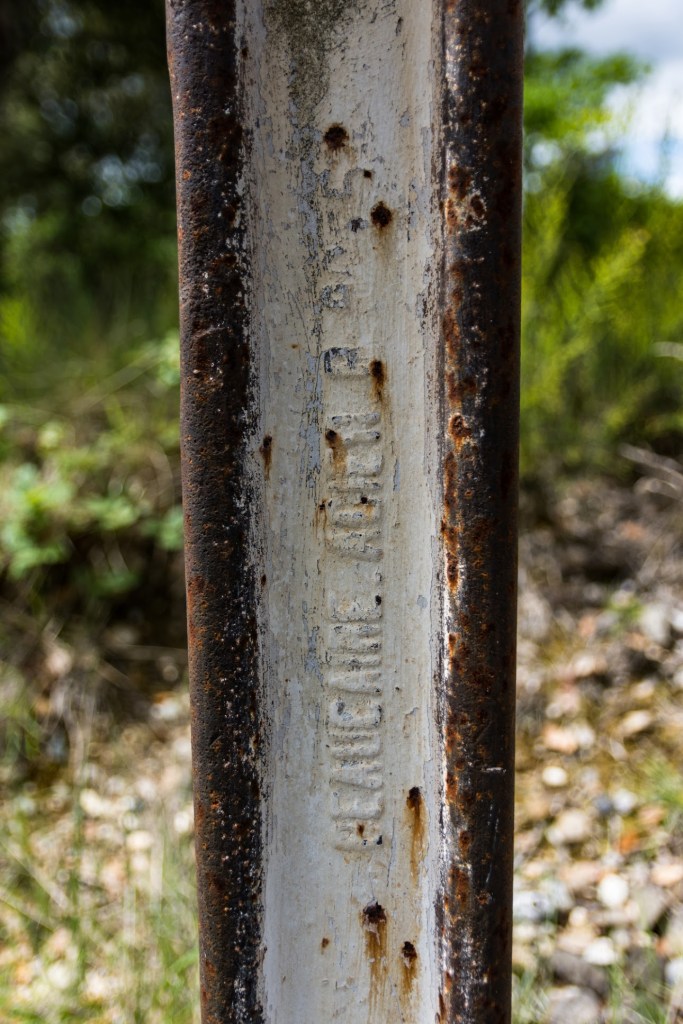 - Schienen mit der Aufschrift BEAUCAIRE habe ich mehrfach an der Chemin de fer de la Mure gefunden. Sie gehörten wohl zu den ältesten Schienen auf der Strecke und sind nach ihrer Abnutzung heute nur noch als Zaunpfähle oder Telegraphenmasten zu sehen.