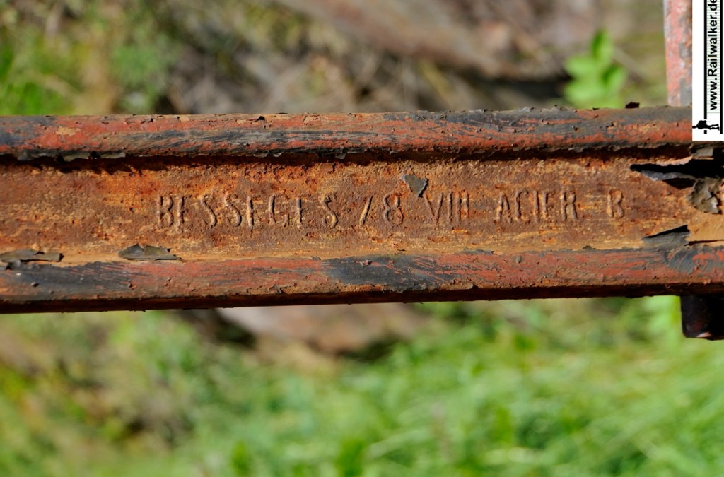- Schienen mit dem Walzzeichen Besseges fand ich im Umkreis von Lyon und sogar bis in den Raum von Limoges. Das Werk in Besseges gehörte zur Firma „Compagnie des Fonderies et Forges de Terrenoire„. Manche der gefundenen Schienen sind datiert bis in die 1870er Jahre.
