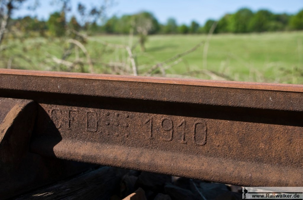 Auf der Schiene ist die Abkürzung der Firma Compagnie de chemins de fer départementaux angegeben. Vermutlich ist sie aber nur der Besteller / Empfänger der Schienen und hat diese nicht selber gewalzt.