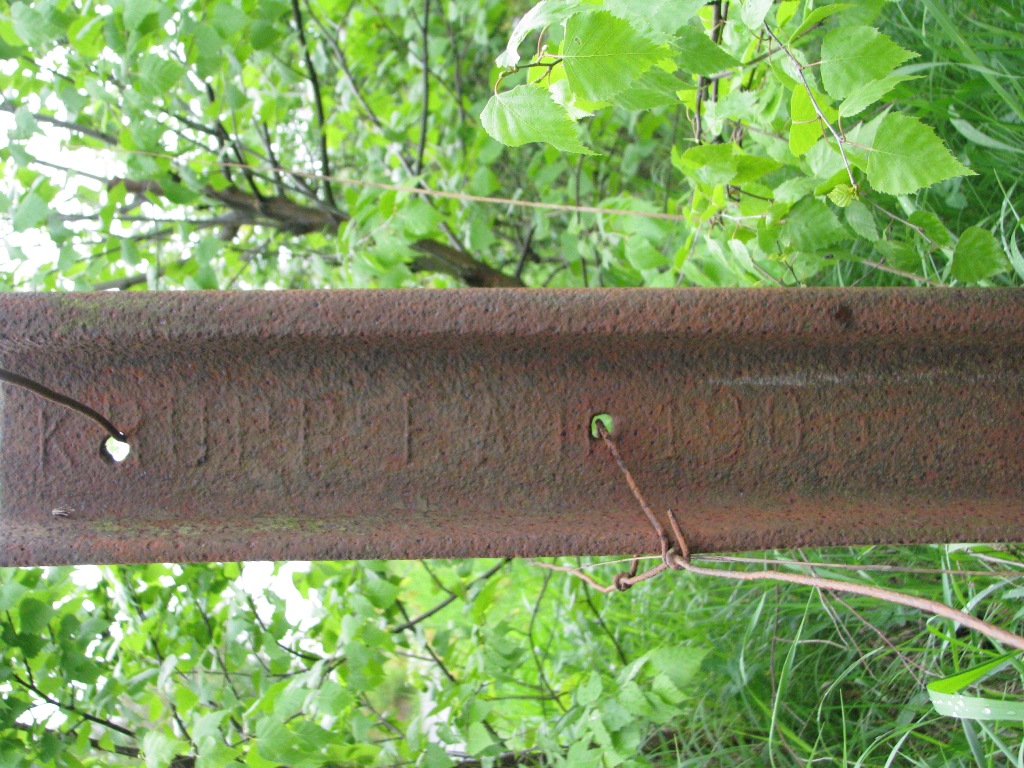 Eine im Urlaub an einem Kuhgitter in den USA entdeckte Schiene trägt das Walzzeichen KRUPP sowie die Abkürzung St.P.M. & MR und das Jahr der Herstellung 1887. Die Abkürzung steht für die St. Paul, Minneapolis and Manitoba Railway.