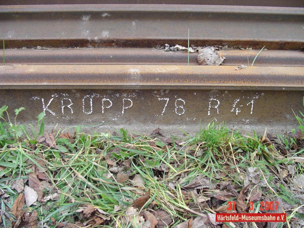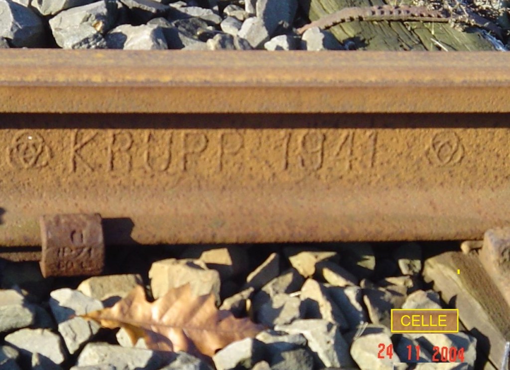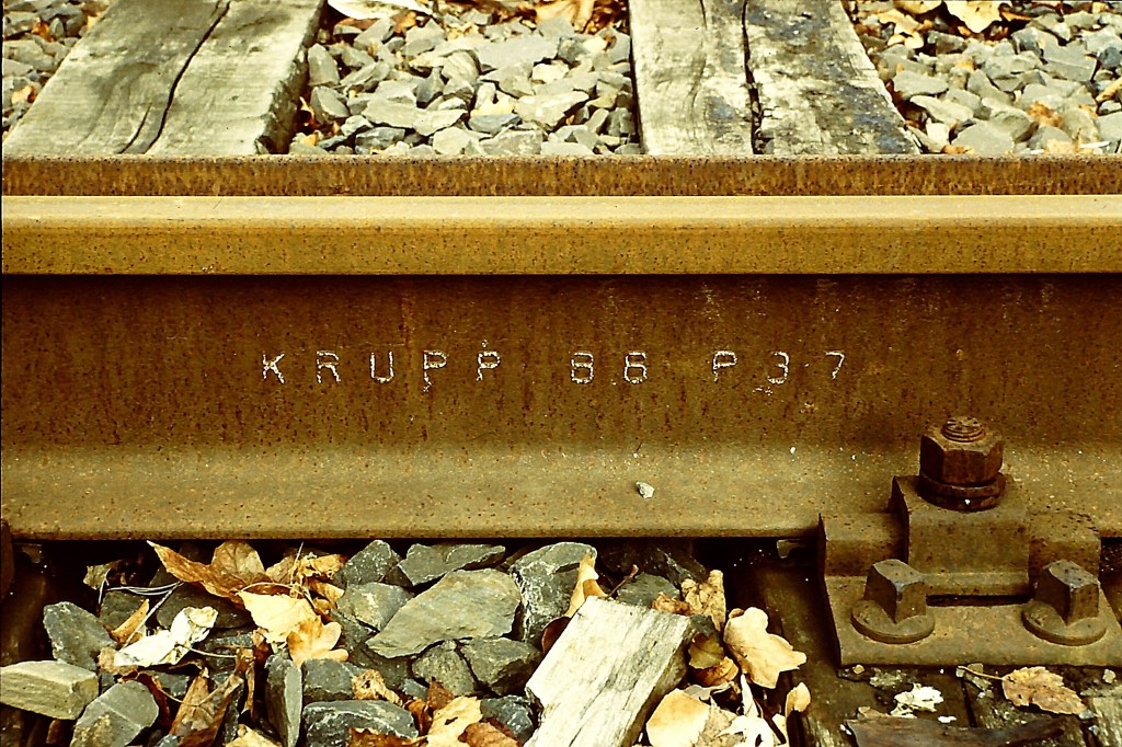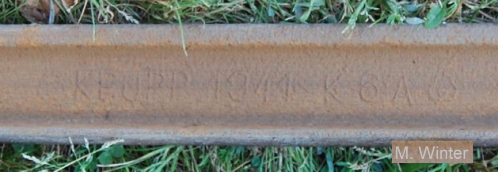 Schienen der Firma Krupp sind weit verbreitet und die Walzzeichen existieren in verschiedenen Zusammenstellungen und Kombinationen. Teilweise mit dem Zusatz „Germany„; oder auch der Ortsangabe „Essen„.