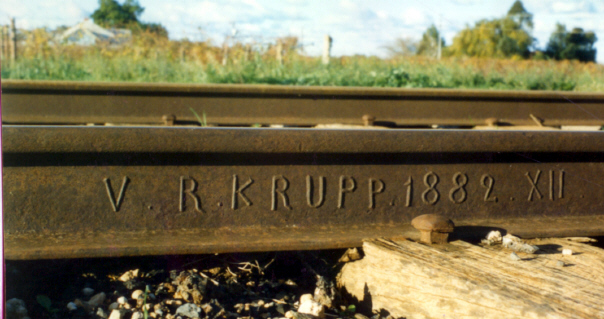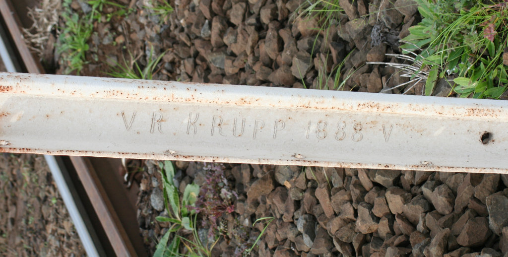 Weitere Schienen mit dem Walzzeichen „V.R. KRUPP“ ließen sich in Australien finden und belegen diese These. Die Walzjahre gehen sogar auf den Fotos bis ins Jahr 1882 zurück.