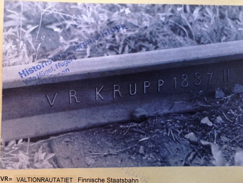 Zu dem oben genannten Foto gibt es widersprüchliche Informationen. Es stammt laut der Bildbeschriftung aus dem Firmenarchiv der Firma Krupp. Demnach wurden solch gewalzte Schienen an die Finnische Staatsbahn „VR“ geliefert.