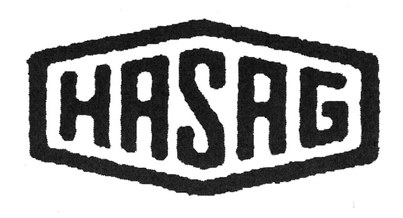 HASAG = Abkürzung der Firma Hugo Schneider AG (auf der Schiene als Logo mit Rahmen gezeigt).