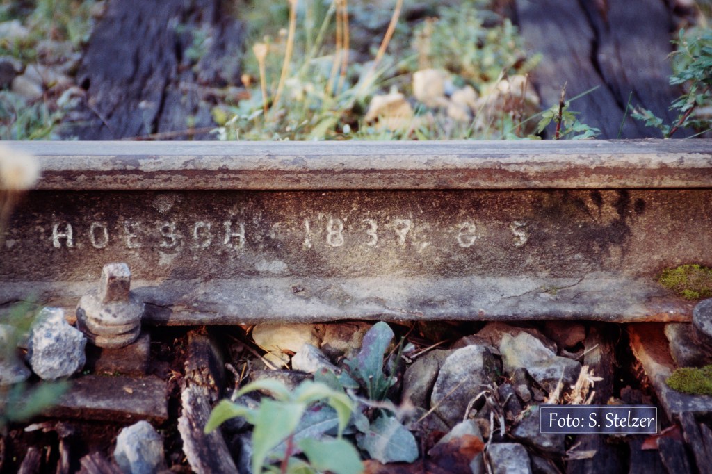 „5. G. 1890„: Auf die 1885 gewalzte Schiene wurde vom Hersteller [HOESCH] eine 5 jährige Gewährleistung bis zum Jahr 1890 gegeben. Nach den damaligen Verträgen durfte nur eine bestimmte festgelegte Anzahl der Schienen „defekt“ gehen.
