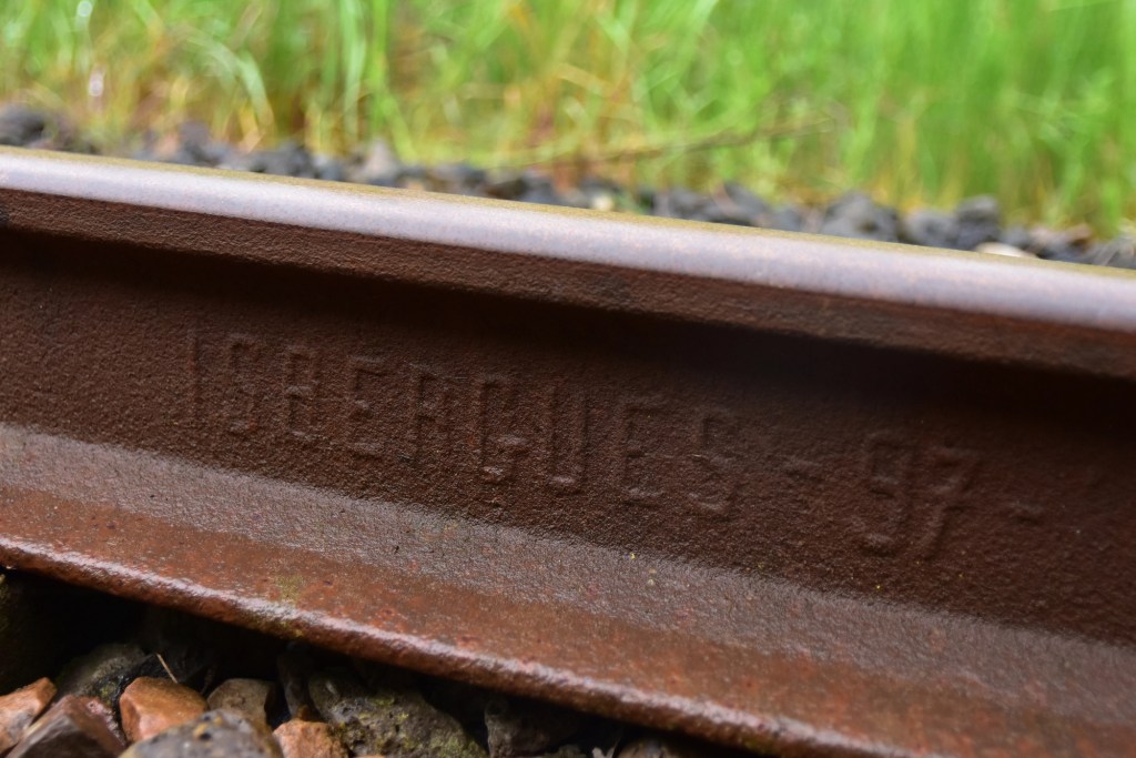 - Das Walzzeichen auf der Schiene existiert in ausgeschriebener Form (ISBERGUES) und auch als verkürzte Form (ISB).