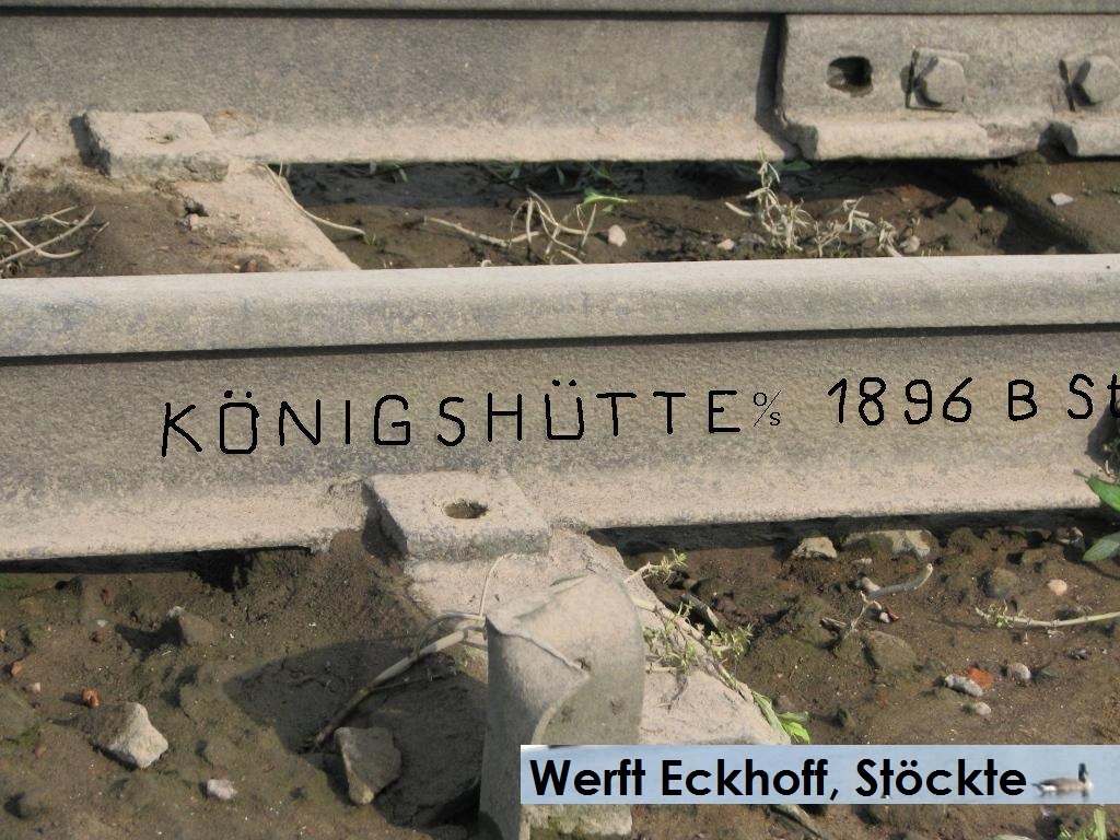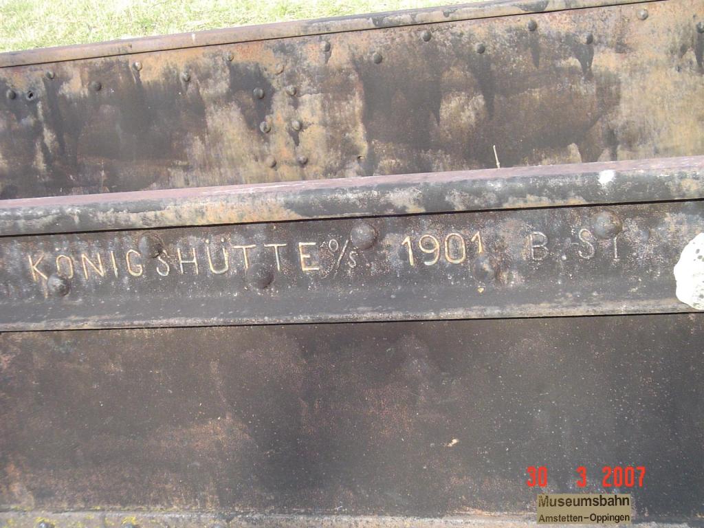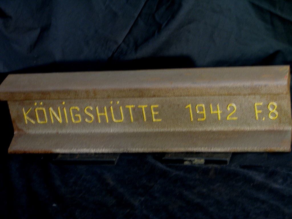 Eine Schiene mit Walzzeichen „KÖNIGSHÜTTE 1942“ hat im Walzzeichen zusätzlich die Kennzeichnung „Geh“ erhalten. Bedeutung noch unbekannt. Möglicherweise ein Hinweis auf eine gehärtete Schiene.