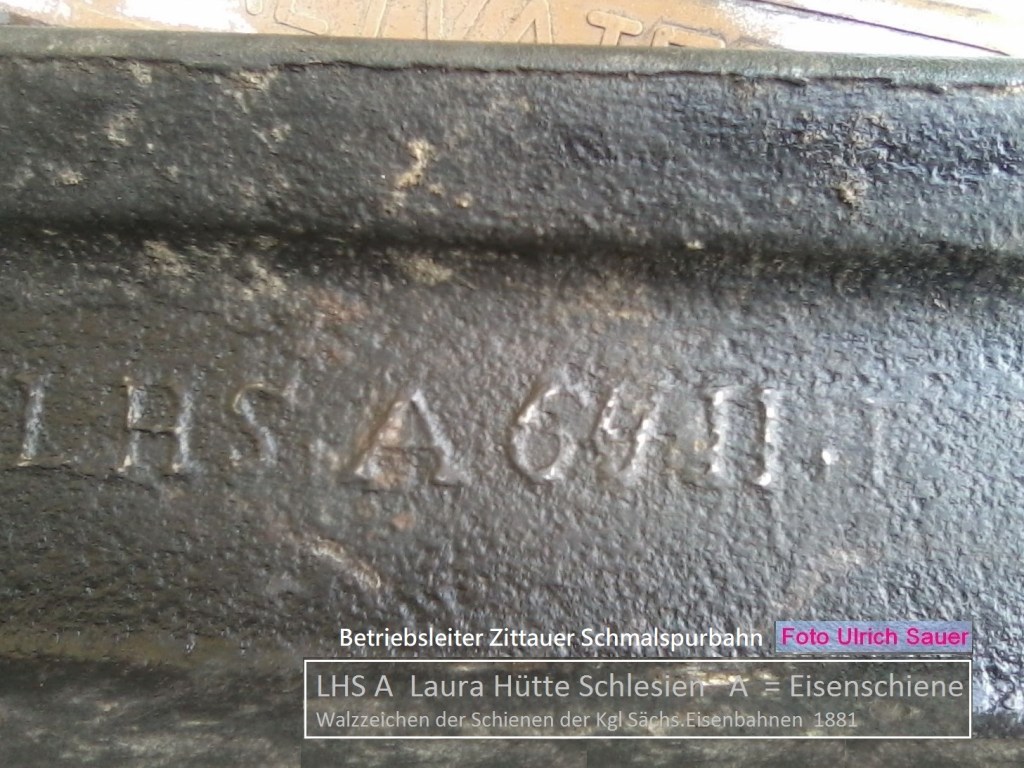 An Königlich Sächsische Staateisenbahn 1858+1864 mit Walzzeichen L.H.S. geliefert, nach Fusion mit Königshütte L.H.S.A, später nur Königshütte jetzt Laura-Stahlwerke in Siemianowice LHS (2019 lt.pol.Internetseite).