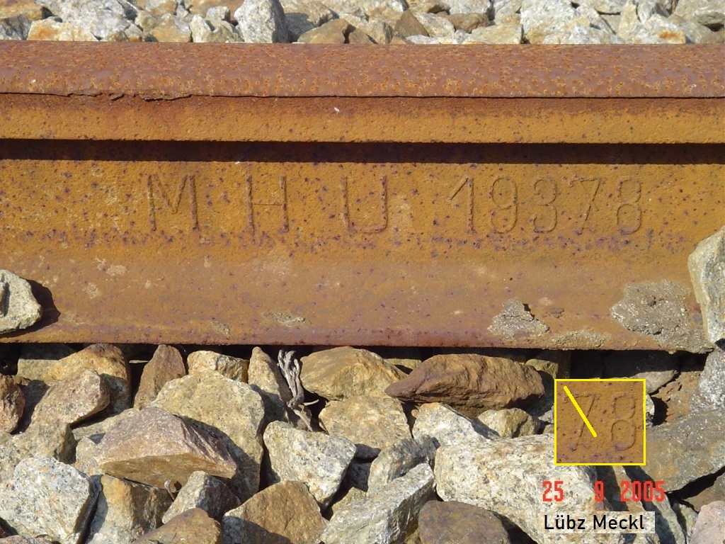 Haben Sie eine Schiene mit diesem Walzzeichen irgendwo gefunden? Sollten sich auf der Seite zu dem betreffenden Walzzeichen bisher weniger als 5 Fotos befinden, freue ich mich über weitere Zusendungen.