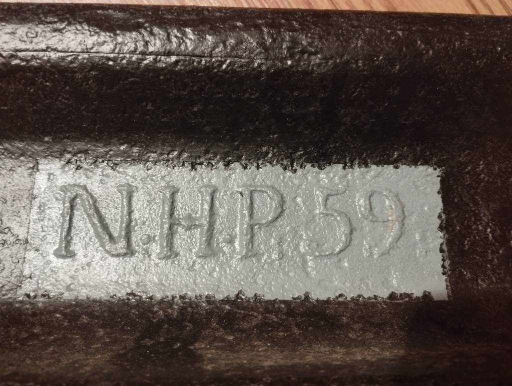 Bisher gefundene Schienen mit dem Walzzeichen „N.H.P. 59“ und „N.H.P. 64„. Es handelt sich im Schienen aus den Jahren 1859 und 1864 und damit um relativ alte Schienen, was auch an der Form der Schiene erkennbar ist (siehe Fotos). Es handelt sich also um einen der ersten Schienenhersteller in Europa