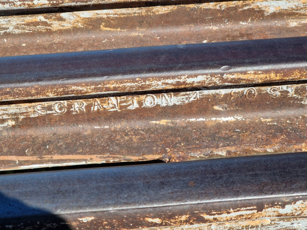 Eine Schiene mit dem Walzzeichen „SCRATON“ fand ich bei meiner Wanderung in den USA auf Pacific Crest Trail, in der Nähe von Kennedy Meadows. Mehrere Schienen wurden zu einem Viehgitter zusammengestellt: