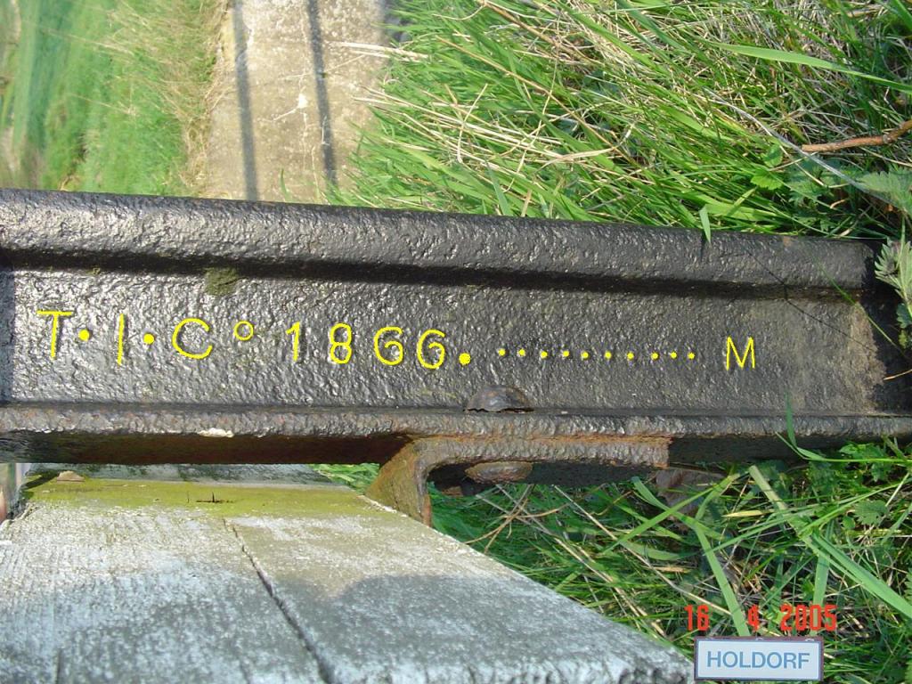 Eine in Polen gefundene Schiene aus dem Jahr 1866 zeigt vor der Herstellerabkürzung das Kürzel „W.W.„. Diese Schienen wurden ursprünglich für die Warschau-Wiener Eisenbahn geliefert (daher das „W.W.“ in der Beschriftung). Foto siehe Galerie weiter unten.