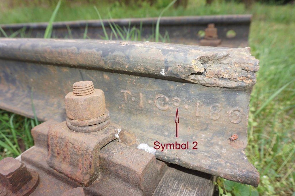 Eine in Polen gefundene Schiene zeigt vor der Herstellerabkürzung das Kürzel „W.W.“ – Diese Schienen wurden ursprünglich für die Warschau-Wiener Eisenbahn geliefert (daher das „W.W.“ in der Beschriftung)