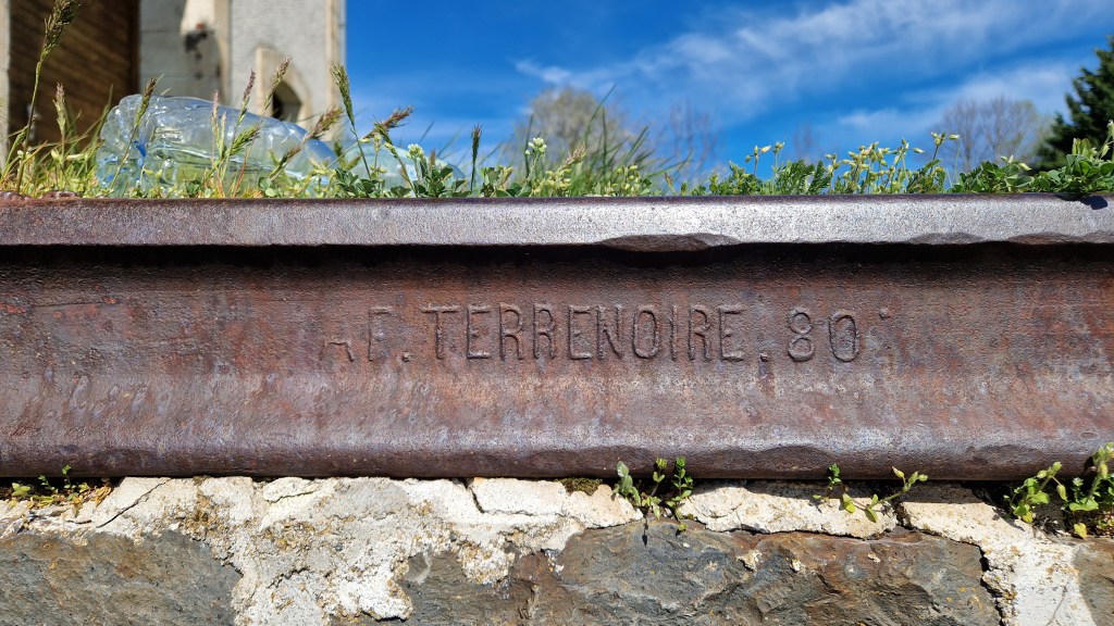 - Vom Walzwerk Terrenoire fand ich Schienen aus den 1880er Jahren im Bahnhof Aubigny-sur-Nere.